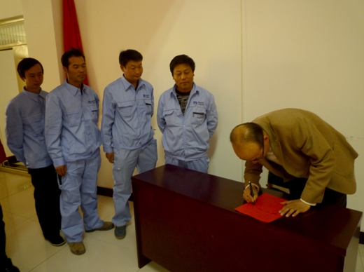 動(dòng)員大會(huì)上各級(jí)領(lǐng)導(dǎo)、各車間管理干部、車間班組長(zhǎng)上臺(tái)進(jìn)行“百日安全大練兵”活動(dòng)簽字儀式。